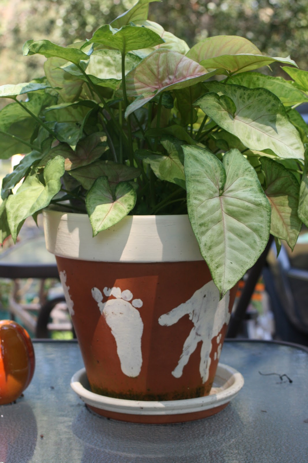Создавайте самые дорогие воспоминания на цветочном горшке. Сделайте отпечаток ножки и ручки ребенка и перенесите ее на вазон. Глядя на него вас всегда будут переполнять теплые чувства.