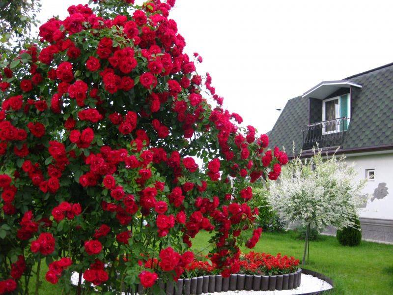 Впрочем, увлечение грядками очень скоро прошло. Да и с самого начала Елизавета Петровна мечтала прежде всего разводить цветы. Первые, неприхотливые, они появлялись в приствольных кругах молодых яблонь, по периметру овощных грядок и вообще на любом свободном островке земли. А уже потом, постепенно, листая журналы для цветоводов, хозяйка участка начала продумывать, как разбить клумбы, где посадить кустарники. Появились у нее и свои цветочные пристрастия - плетистые розы, лилии, клематисы.