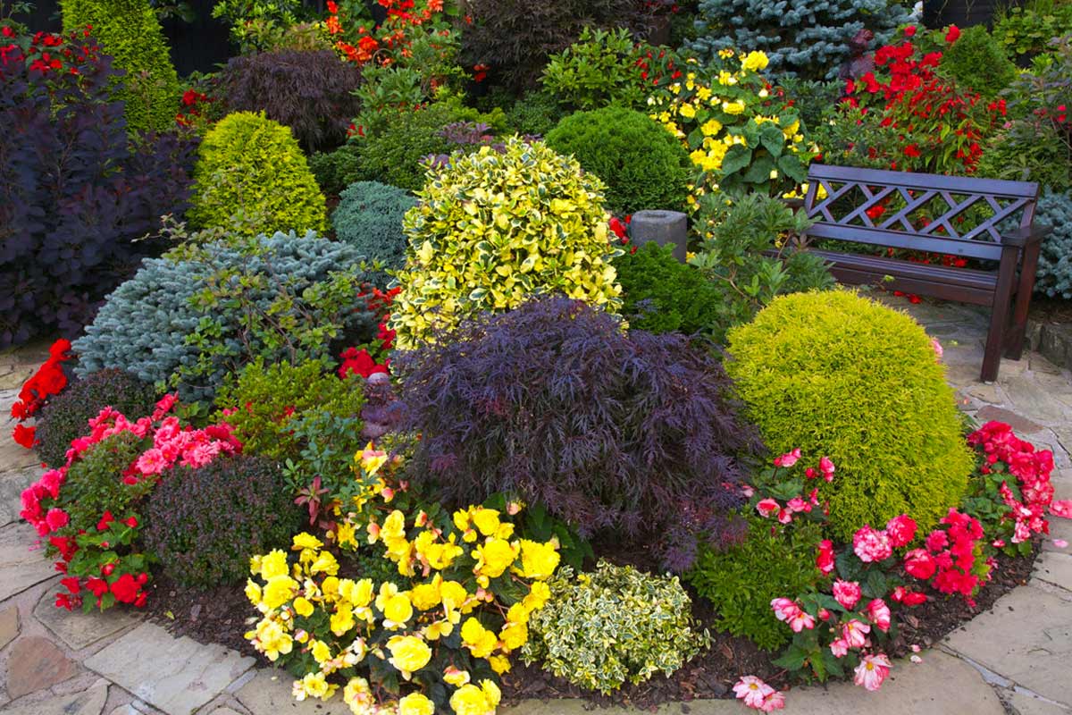 - Крабовые яблоки и японские клены выглядят красиво и обеспечивают красочные листья или цветы.