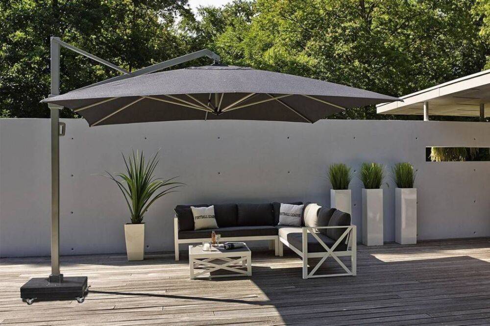 При комплектации садовой, балконной и террасной мебели стоит учитывать дополнительное затенение - особенно, когда поблизости нет обширных деревьев или какой-либо кровли, способной защитить вас от летнего зноя и даже от небольшого дождя.