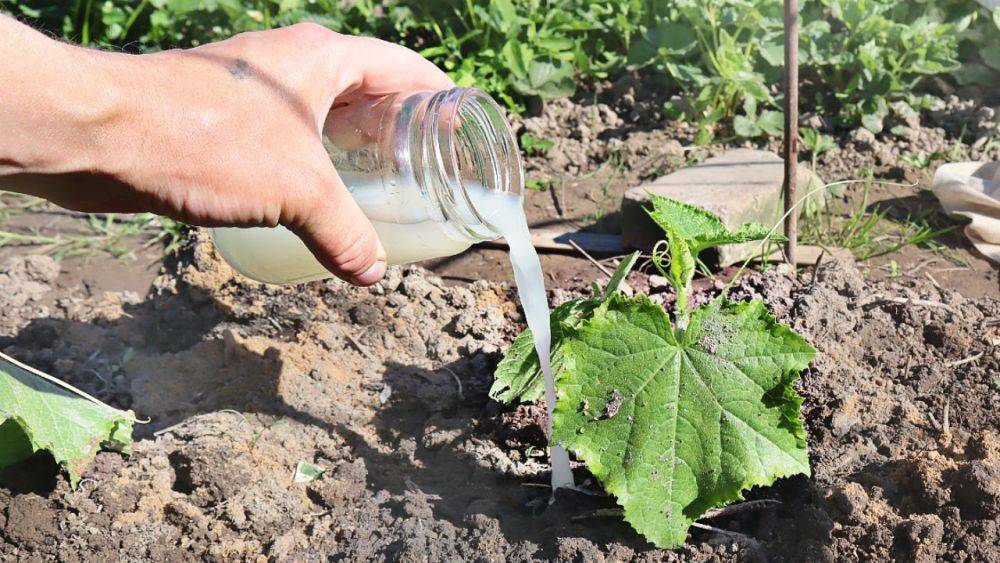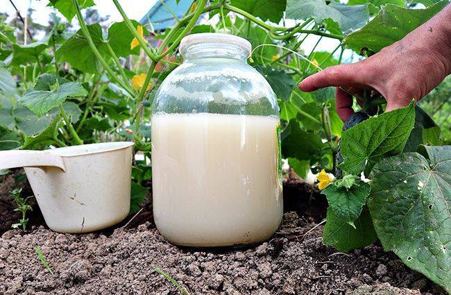 1. Раствор молочной сыворотки. Разведите 1 л сыворотки в 10 л воды и полейте рабочим раствором огурцы под корень из расчета 1 л на каждый взрослый куст.