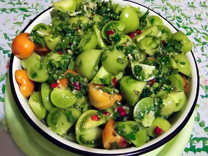 Абсент, Болото, Зеленый виноград, Зеленый гигант, Зеленый Чероки, Изумрудная груша, Изумрудное яблоко, Ирландский ликер – вот далеко не полный список сортов зеленоплодных томатов. Они отличаются более оригинальной окраской, чем привычные для нас красные помидоры, но при этом не менее вкусны. А вот и рецепты с их "участием".